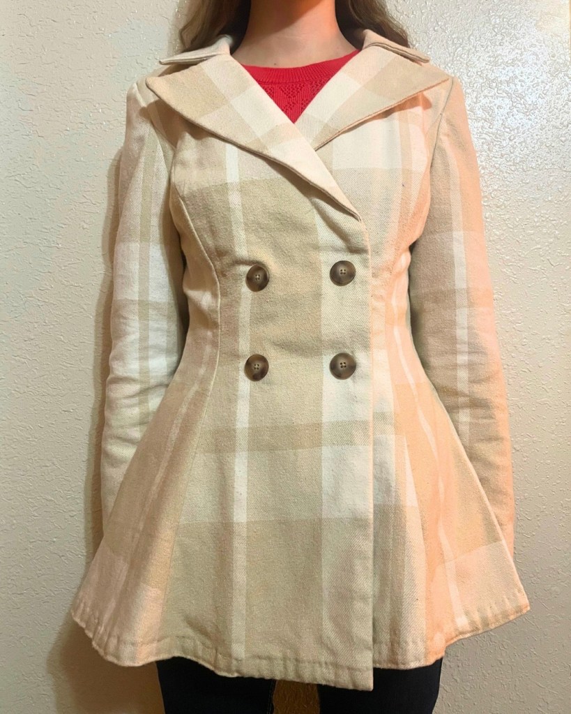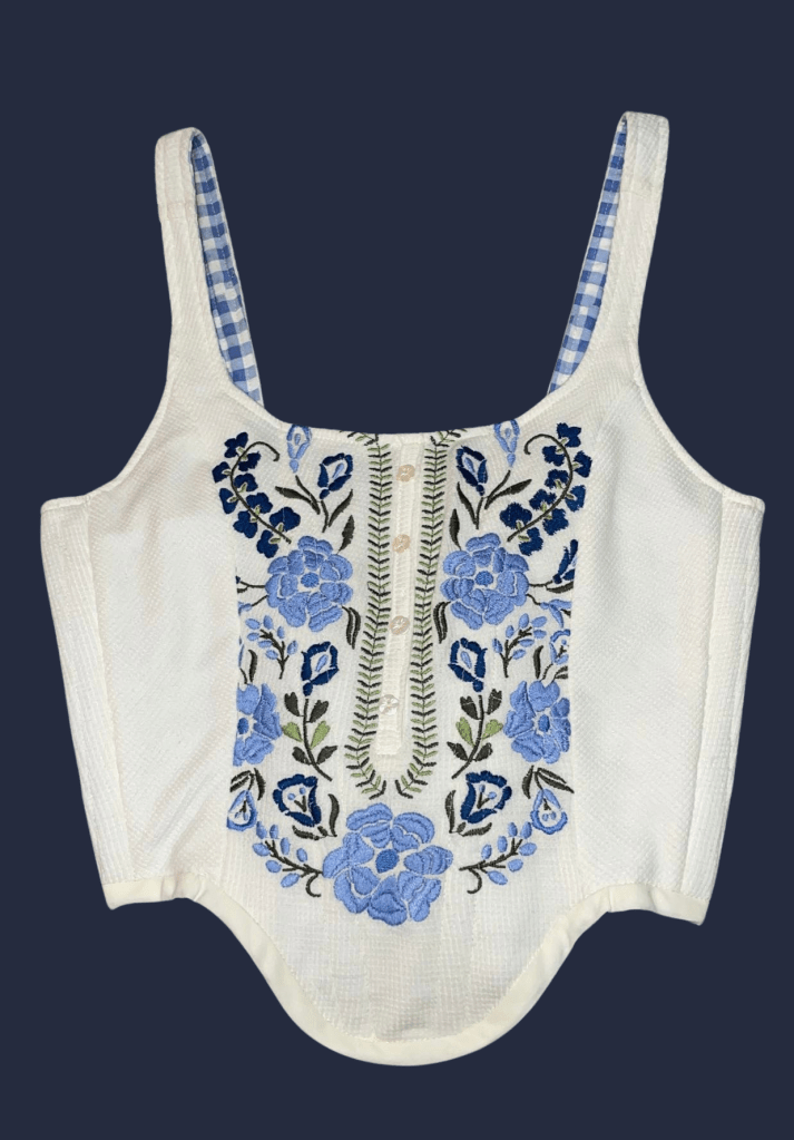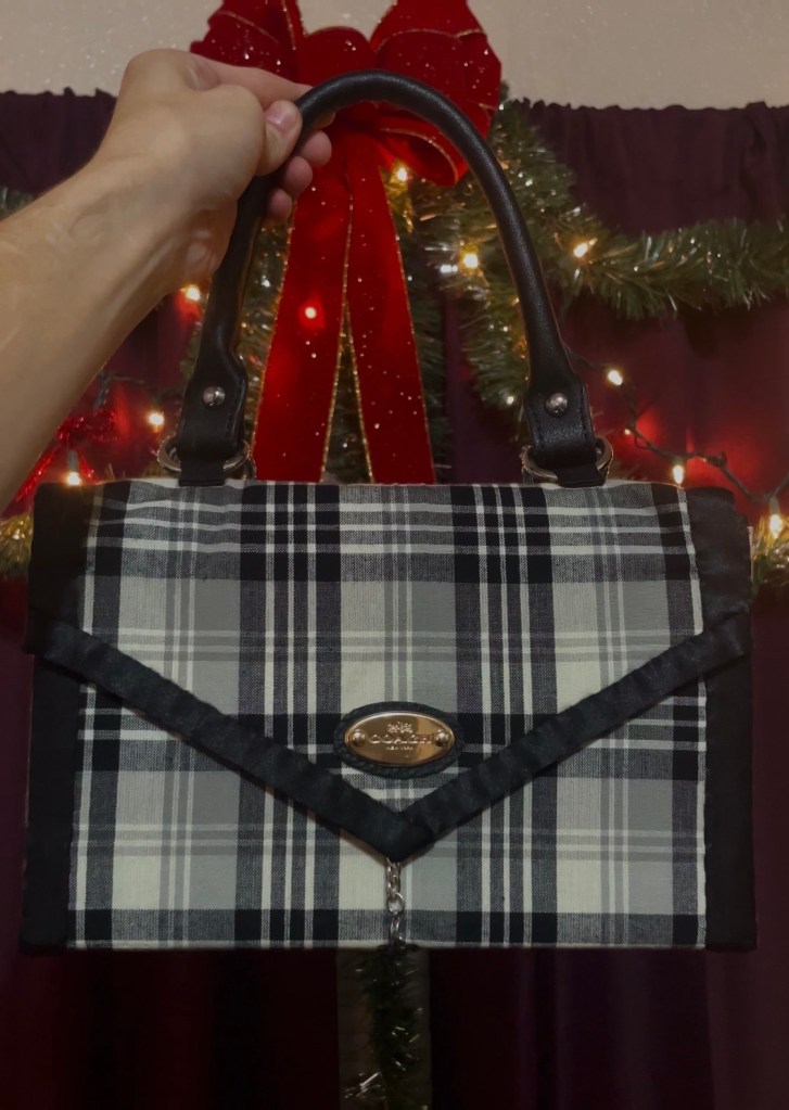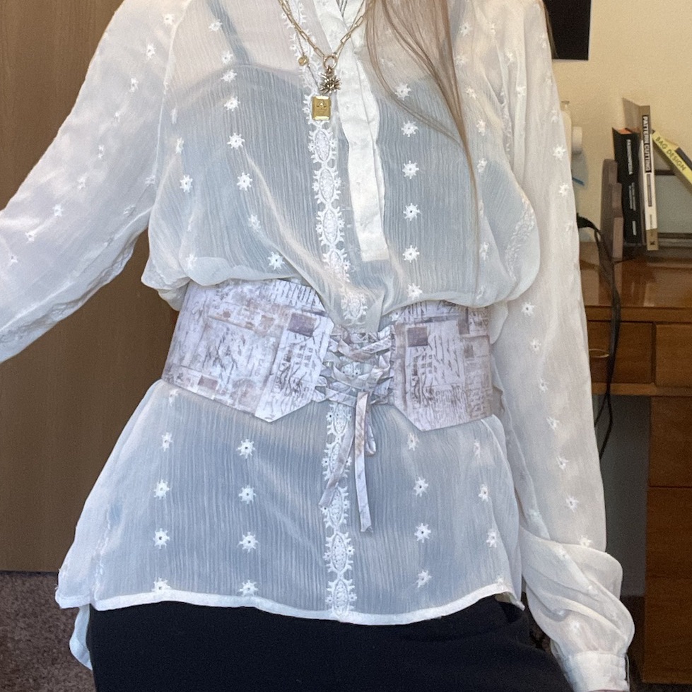Structured purse made from a self drafted pattern with recycled hardware. Hand embroidered wool cloak made from a self drafted pattern. knit long sleeve shirt up-cycled into a corset style bodice made using a self drafted pattern. Pickup truck sun visor re-upholstered.Simple black cotton twill A-line skirt made from a commercial pattern. Statement belt made from a self drafted pattern. Brocade jacket made using traditional tailoring techniques and from a small business commercial pattern. 25 lb. Weighted Christmas tree skirt made from a self drafted pattern.25 lb. Weighted Christmas tree skirt made from a self drafted pattern.Stuffed Christmas tree decorations. 2.5” fabric bookmarks. Quilted potholder. Quilted coaster. Corset style fashion belt made using a self drafted pattern. Sashiko style mending on pocket corner. Sashiko style mending on pocket corner. Princess Line coat made using a commercial pattern. Simple A-line style skirt with lining made using a commercial pattern.